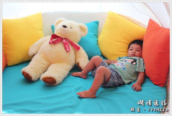 宏大超愛這張圓床,一進去就爬上去說要睡覺,隔天早上起床也自己帶著玩具爬上去玩了起來,他阿爸說家裡也來買一張好了,只要可以讓宏大安靜的待上一陣子的東西,他阿爸都很想買回家。